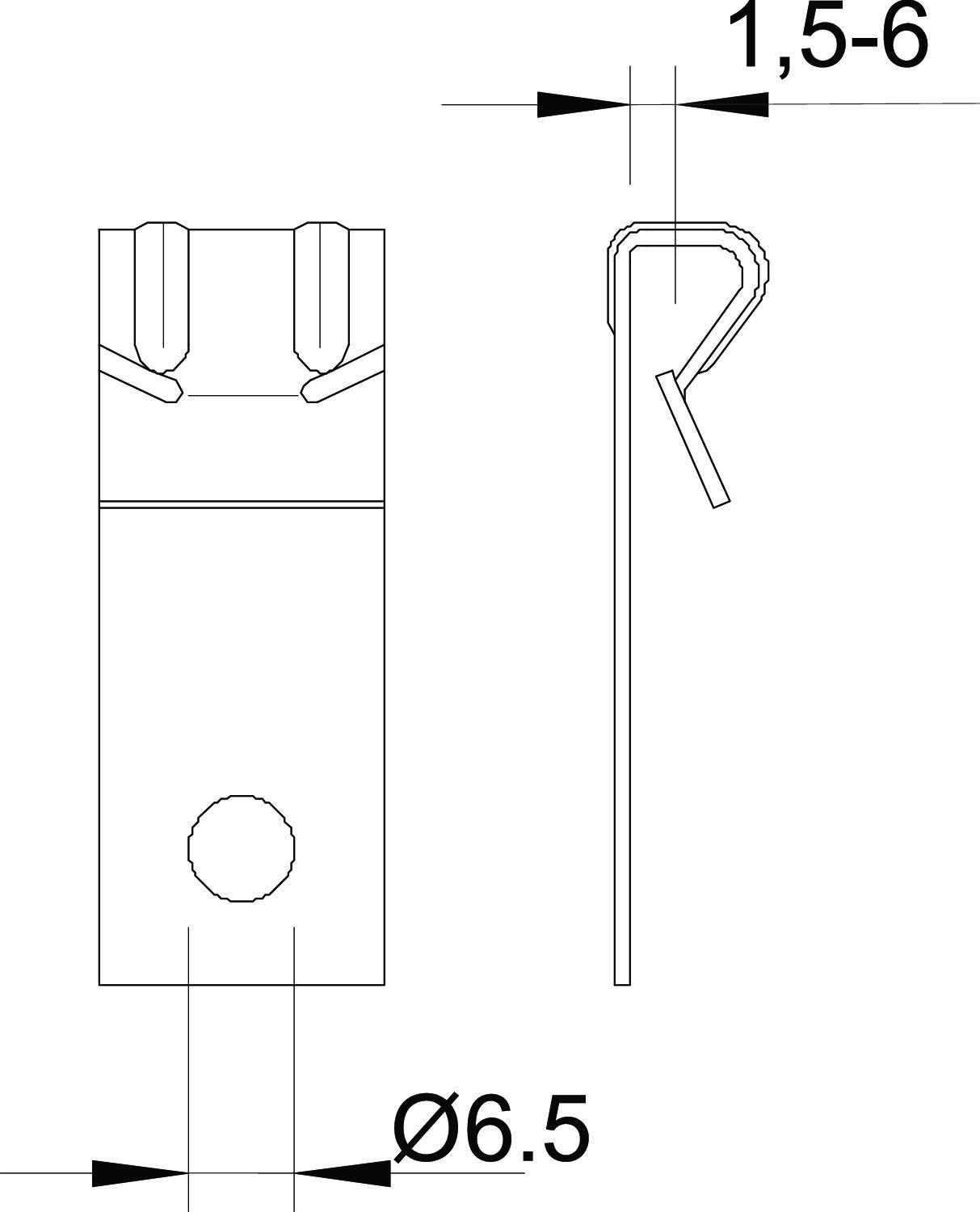 Debljina prirubnice F maks. 4 mm Debljina prirubnice F min. 1,5 mm Dimenzija 1,5-4mm Dimenzija H 52 mm Dimenzija L 10 mm Maksimalna nosivost 0,72 kN Materijal Čelik Podesivi zglob ne Površina Listići od cinka Pričvrsna rupa 7 mm Širina 10 mm Visina 52 mm Vrsta pričvršćivanja zategnuti Zglobno ne - Svi tipovi