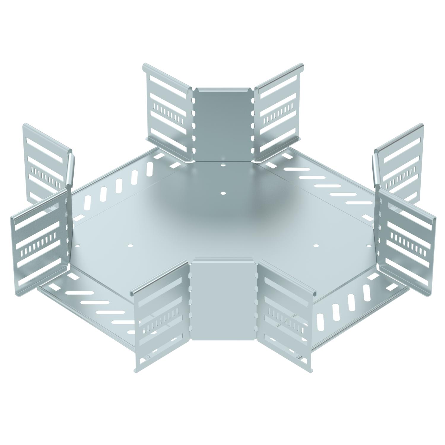Opis proizvodaRačva za izradu horizontalnog grananja, fazonski komad za uskočne nosače kablova i nosače kablova za učvršćivanje zavrtnjima, bočna visina 110 mm. Montaža bez šrafova sa duplim stezaljkama ili navojnim spojem sa torban zavrtnjima FRS i kombinovanim navrtkama M6. Primenljivo u zatvorenom prostoru. Materijal za pričvršćivanje se mora naručiti posebno.