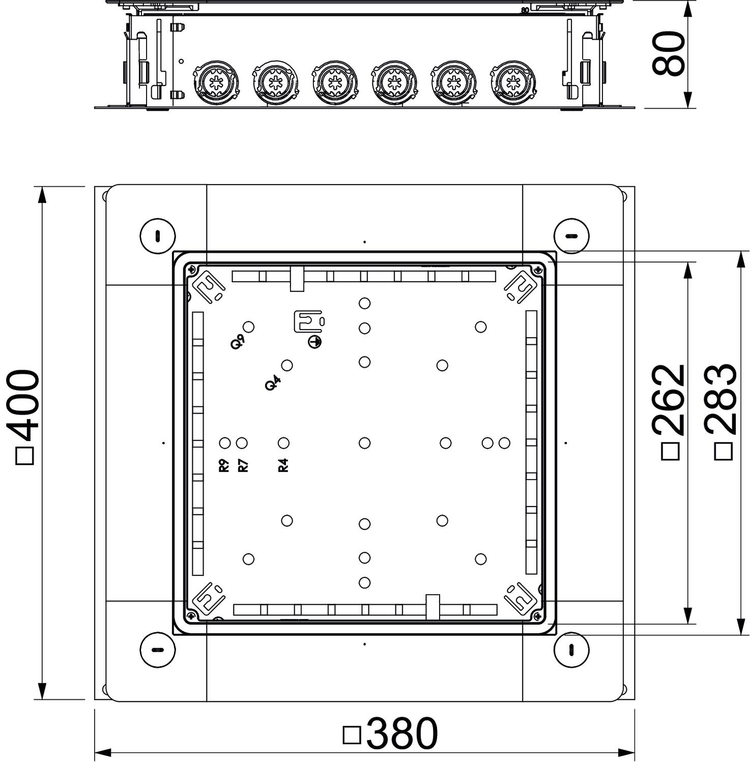 Opis proizvodaPodna vezna i razvodna kutija UZD250-4 R sa bočnim stranicama od čeličnog lima. Za montažu ugradnih jedinica u montažni poklopac (naručuje se posebno). Može da se niveliše kontinualno sa brzom nivelacijom na visinu betonske košuljice od 80 - 160 mm. Betonska košuljica može da se obradi u ravni sa ivicom poda. Sa opcijom akustičkog odvajanja nakon ugradnje betonske košuljice, a uz pomoć sistemskog pribora, može da se koristit i za velika opterećenja. Uvođenje kablova i vodova kroz uvodnice za cevi. Pogodno za uvođenje cevi po strani za 6 instalacionih cevi prečnika M20, M25 i M32.