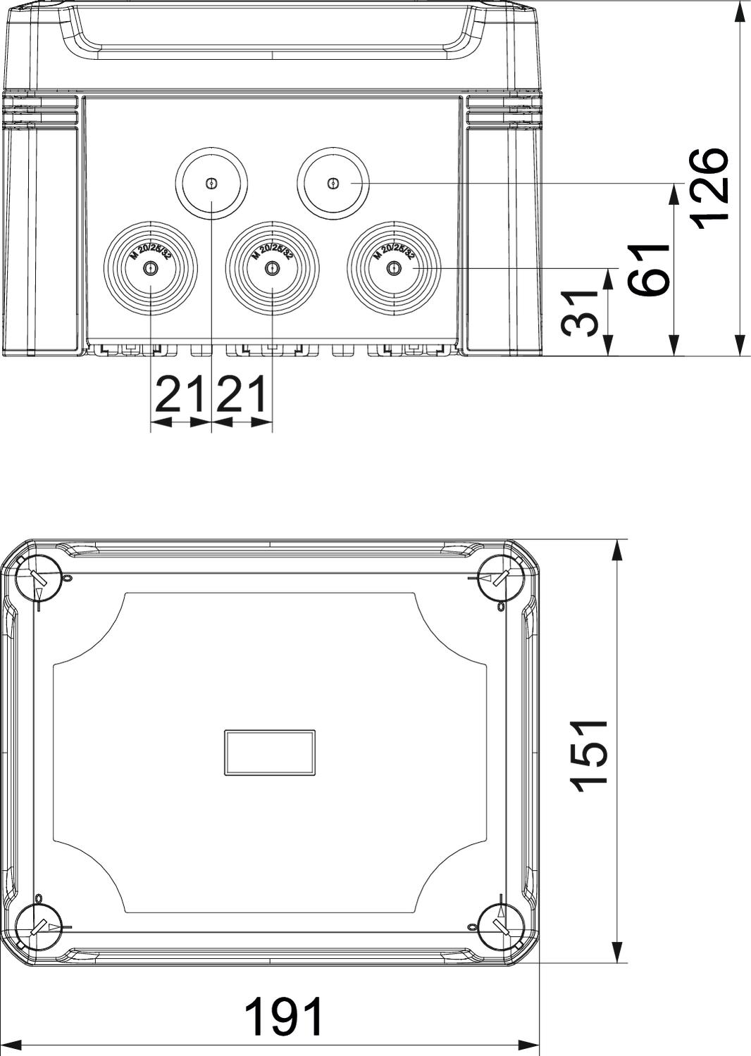 Opis proizvodaRazvodne kutije za kablove sa profilnom šinom za spajanje kablova i provodnika u zatvorenim prostorijama i na otvorenom. Pravougli oblik sa otvorima koji mogu da se izlome. Odgovara za zidnu i plafonsku montažu sa mogućnosti spoljnog pričvršćivanja, unutrašnjeg pričvršćivanja ili montaže preko ugaonih kupastih elemenata. Posebno otporno na udarce sa IK09. Transparentni poklopac sa brzim zatvaračem, može da se plombira. Napravljen od materijala bez halogena i UV otpornog.