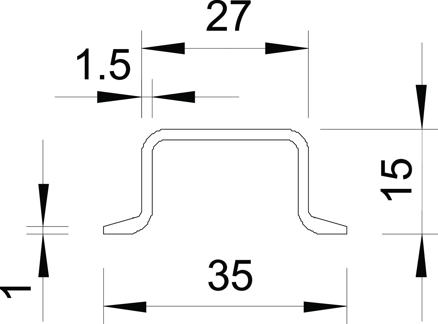 Opis proizvodaTorban-profilna šina 35 x 15 mm slično DIN EN 60715 (ranije DIN EN 50022), ali sa debljinom materijala 1,5 mm.