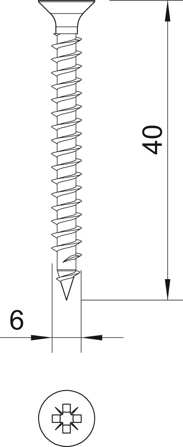 Dimenzija 6x40mm Dimenzija D 6 mm Dimenzija L 40 mm Dužina 40 mm Materijal Čelik Oblik glave Upuštena glava Ojačano da Površina galvanski pocinkovano Prečnik glave 11 mm Vijčani sistem Pozidriv PZ - Svi tipovi