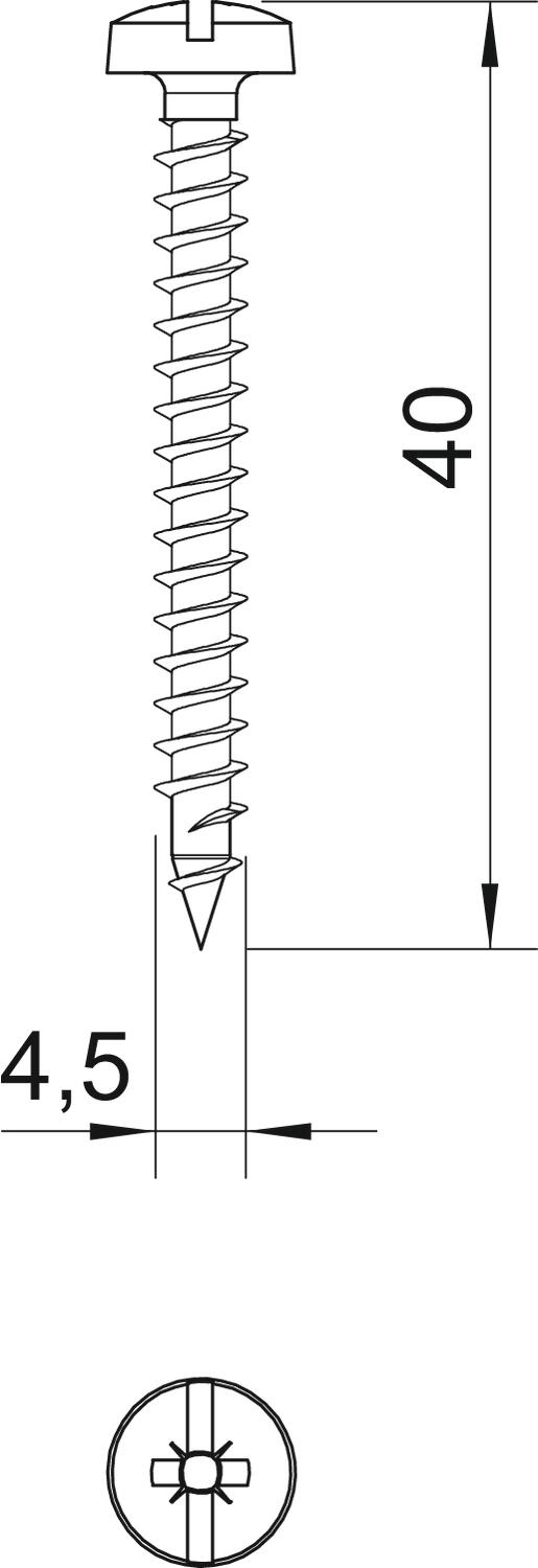 Debljina 4,5 mm Dimenzija 4,5x40mm Dimenzija D 4,5 mm Dimenzija L 40 mm Dužina 40 mm Dvokomorni da Materijal Čelik Oblik glave Panhead Ojačano da Površina galvanski pocinkovano Prečnik glave 8,2 mm Vijčani sistem Kombinovani prorez - Svi tipovi