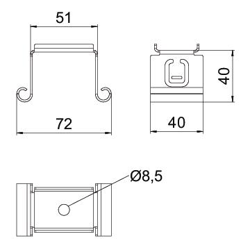Opis proizvodaSredišnji nosač za nosače kablova za kačenje u bočnu stranu nosača kablova.