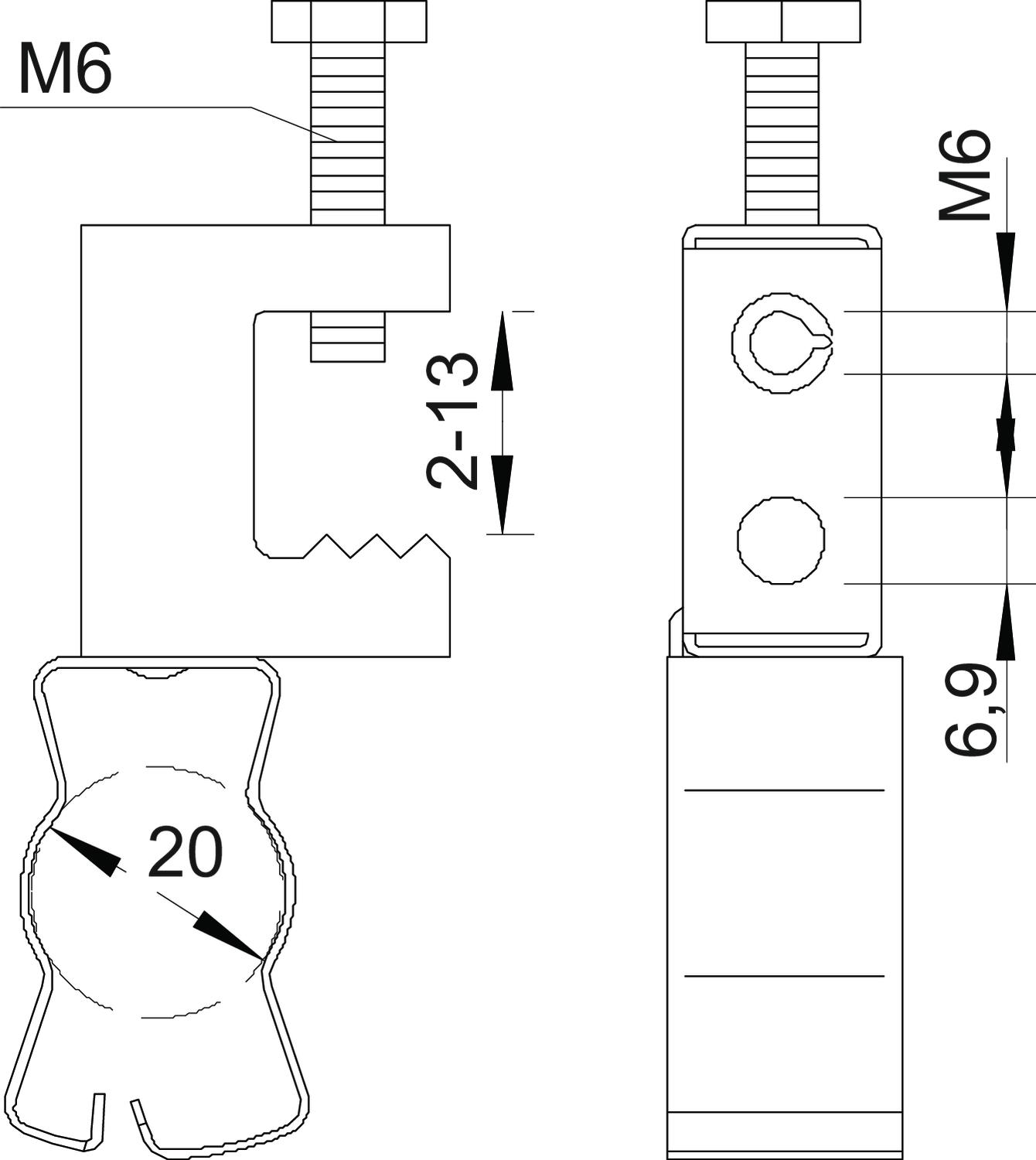 Debljina prirubnice F maks. 17 mm Debljina prirubnice F min. 2 mm Dimenzija 2-13mm Dimenzija D 20 mm Dimenzija D maks. 25 mm Dimenzija D min. 23 mm Maksimalna nosivost 0,45 kN Materijal Čelik Podesivi zglob ne Površina Listići od cinka Prečnik cevi/kabla maks. 25 mm Prečnik cevi/kabla min. 23 mm Prečnik kabla maks. 25 mm Prečnik kabla min. 23 mm Vrsta pričvršćivanja naviti Vrsta priključka/komponente Cev/kabl Zglobno ne - Svi tipovi
