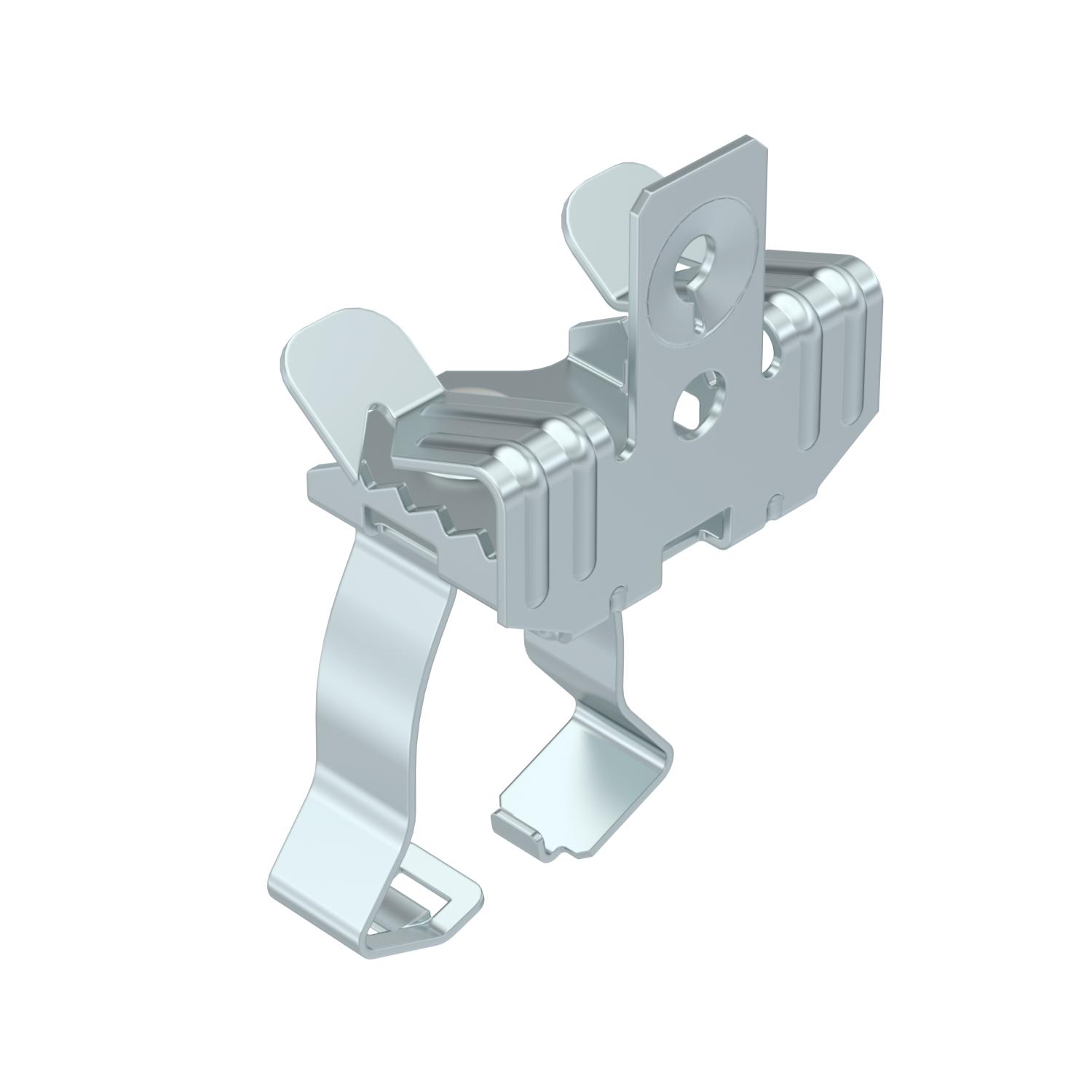 Opis proizvodaStezaljka nosača za montažu cevi. Zatvoreni prihvat za cev sa donje strane. Učvršćivanje na čelične nosače zakivanjem.