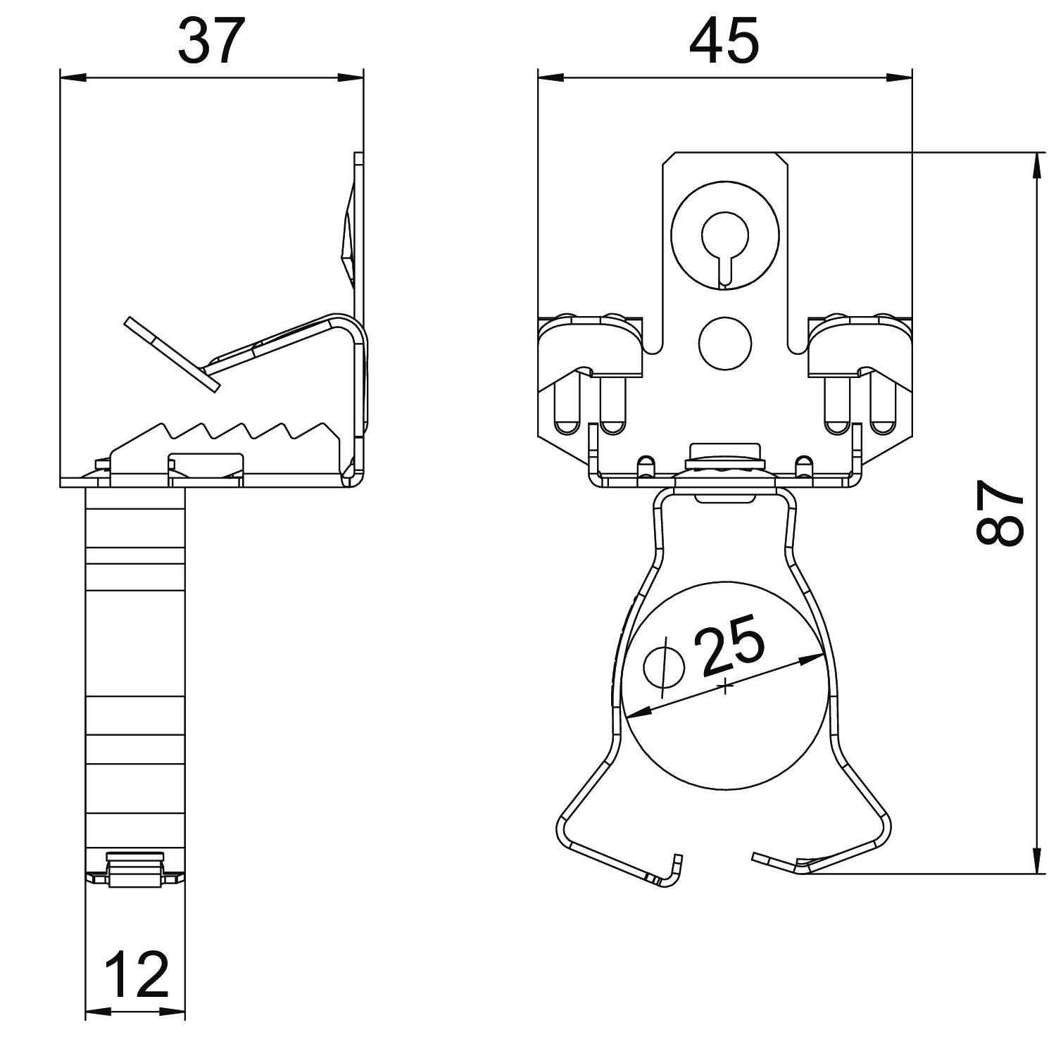 Boja cink Debljina prirubnice F maks. 13 mm Debljina prirubnice F min. 7 mm Dimenzija 7-13mm Dimenzija L 87 mm Dužina 89 mm Maksimalna nosivost 0,45 kN Materijal Čelik Podesivi zglob ne Površina Listići od cinka Prečnik cevi/kabla maks. 25 mm Prečnik cevi/kabla min. 20 mm Širina 45 mm Visina 37 mm Vrsta pričvršćivanja zategnuti Vrsta priključka/komponente Cev/kabl Zglobno ne - Svi tipovi