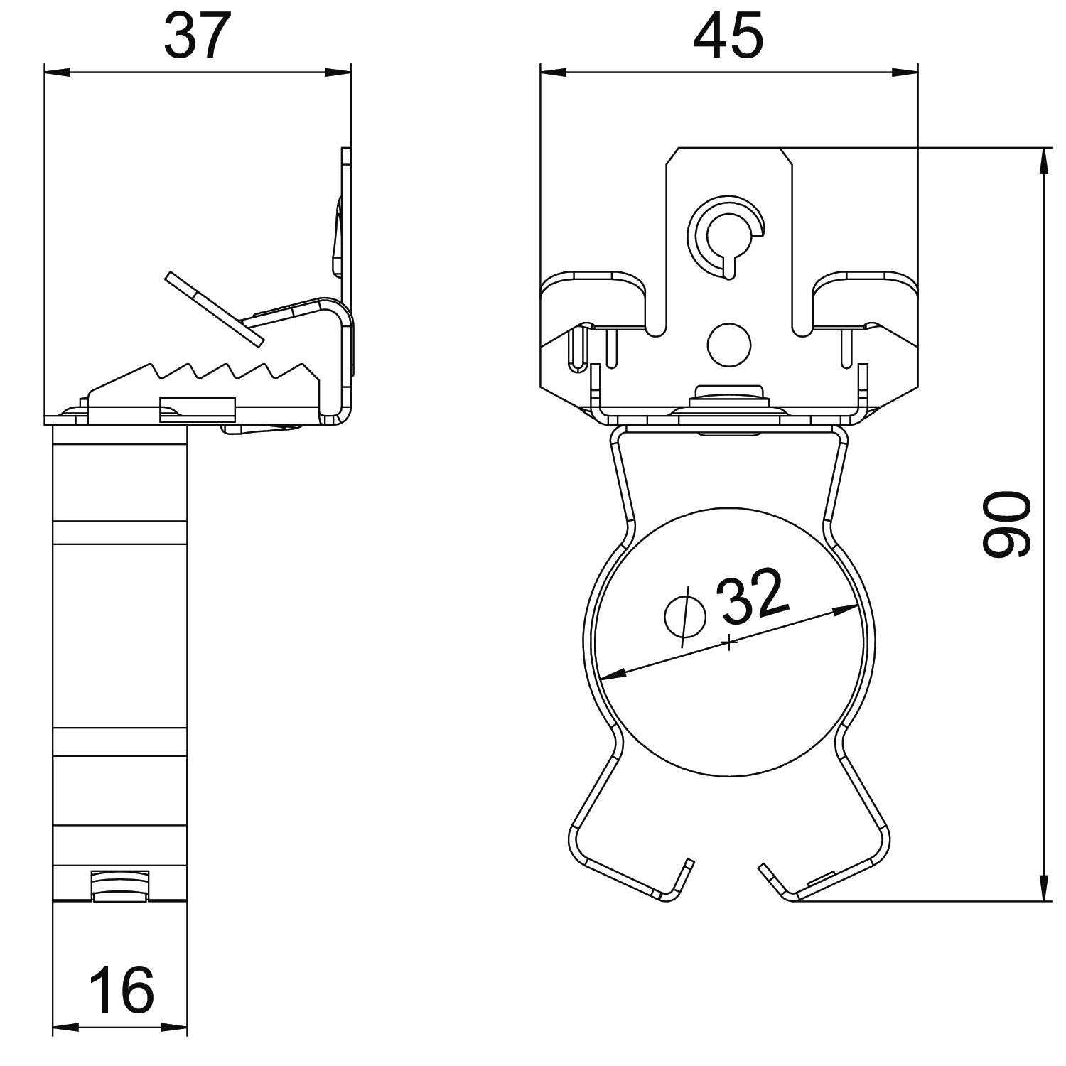 Boja cink Debljina prirubnice F maks. 7 mm Debljina prirubnice F min. 3 mm Dimenzija 3-7mm Dimenzija L 90 mm Dužina 90 mm Maksimalna nosivost 0,45 kN Materijal Čelik Podesivi zglob ne Površina Listići od cinka Prečnik cevi/kabla maks. 32 mm Prečnik cevi/kabla min. 30 mm Širina 45 mm Visina 37 mm Vrsta pričvršćivanja zategnuti Vrsta priključka/komponente Cev/kabl Zglobno ne - Svi tipovi