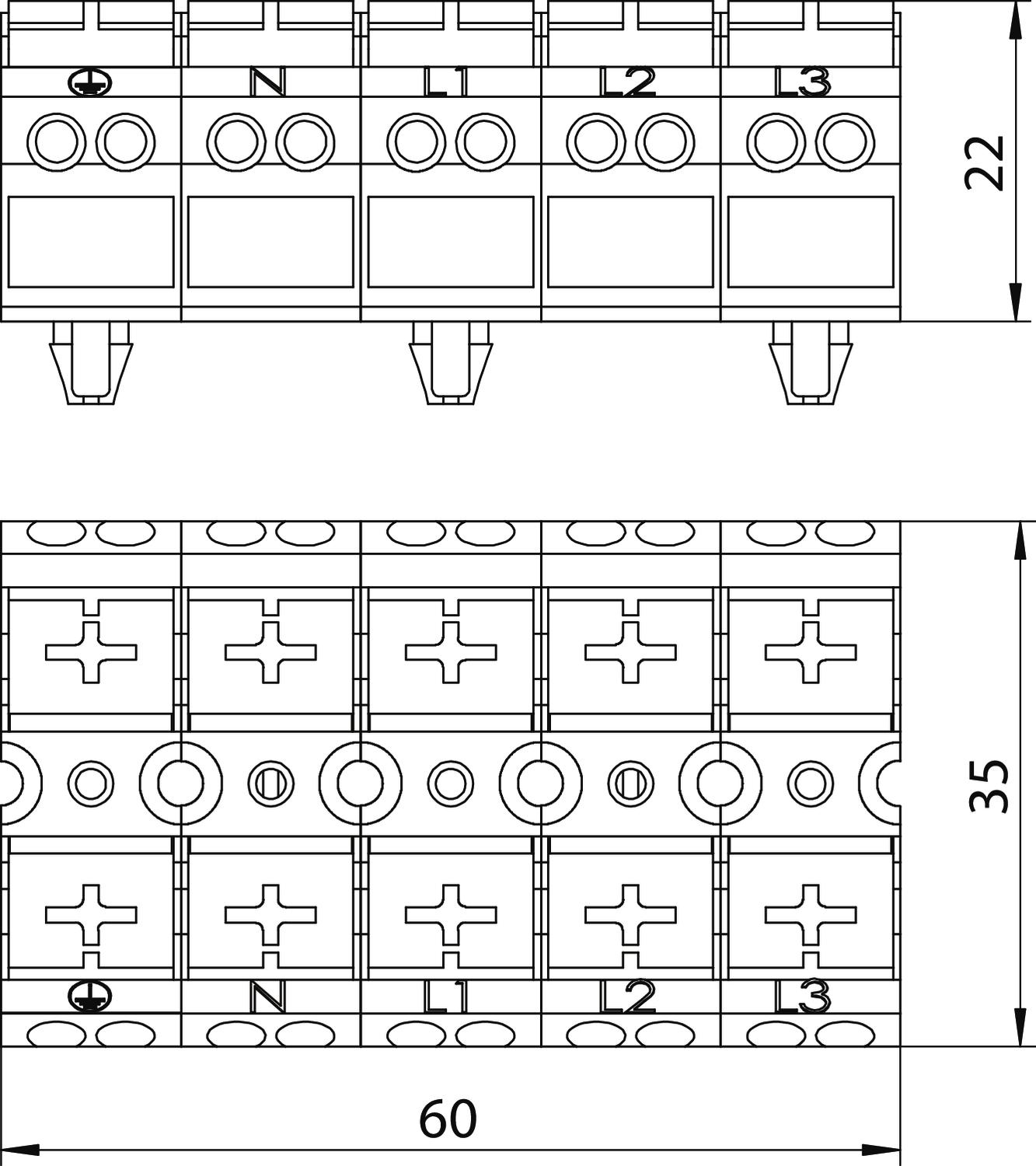 Opis proizvodaUtični blok sa klemama bez vijaka sa uklopnom stopicom, 5-polni za prečnik provodnika od 0,5 - 4 mm².