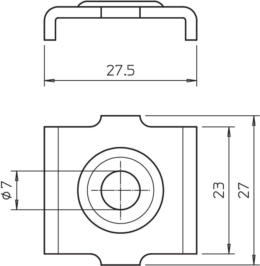Opis proizvodaStezni komad za pričvrćivanje mrežastih nosača kablova širine 50 mm na pod.