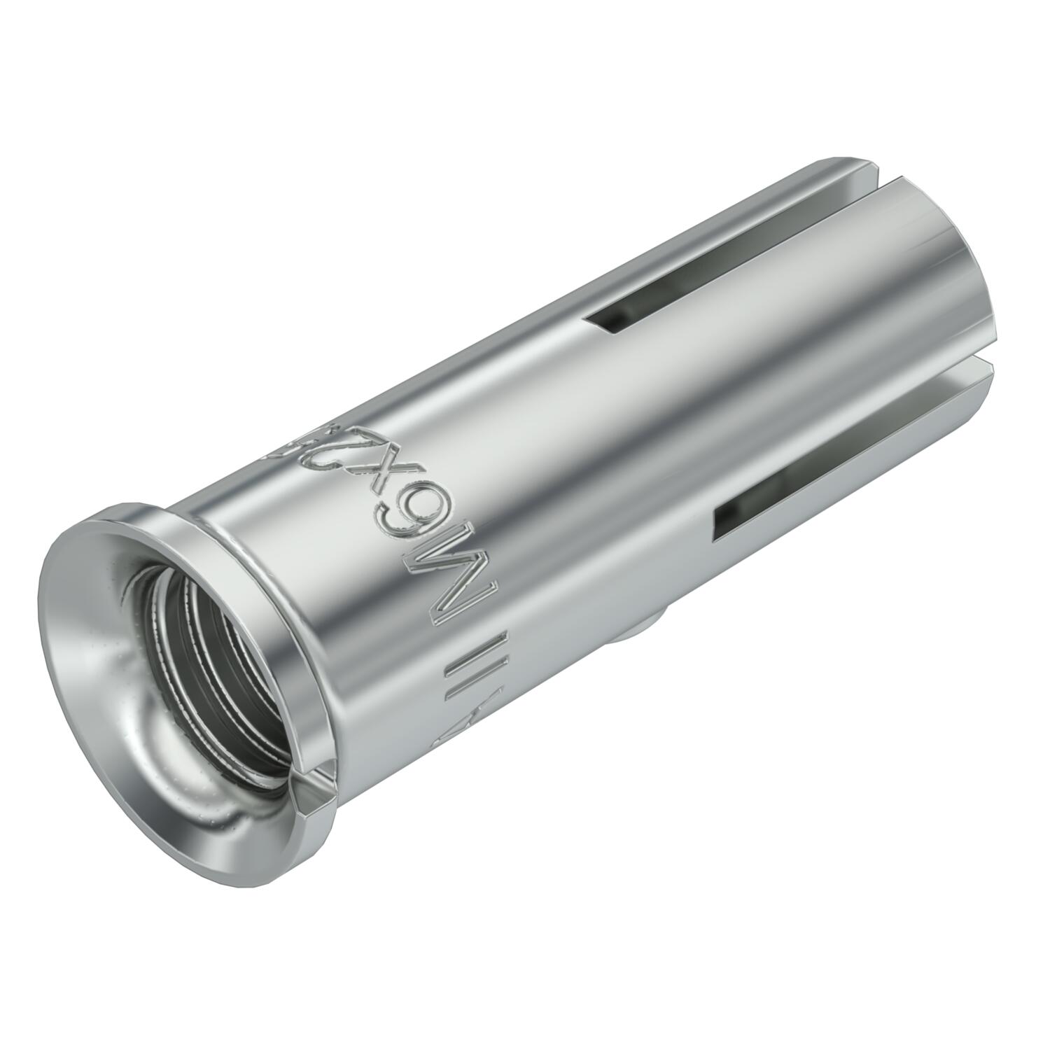 Opis proizvodaUdarni anker vijak za višestruko pričvršćivanje, sa unutrašnjim navojem u čeličnoj varijanti, za ankerisanje, npr. sistema nosača kablova, konzola, čeličnih konstrukcija, itd., u neispucalom betonu, u zatvorenom i otvorenom prostoru. Za zakucavanje čekićem. Sa podignutom ivicom kako bi se sprečilo uvlačenje u bušotinu. Ne rđa i veoma otporno na koroziju. Anker čaura se steže uz zid bušotine kada se unutrašnji klin zakuca, npr. pomoću ručnog alata za postavljanje EHS M. Požarno tehnički ispitano, klasa vatrootornosti R 120 prema evropskoj tehničkoj dozvoli ETA-07/0135 za beton.