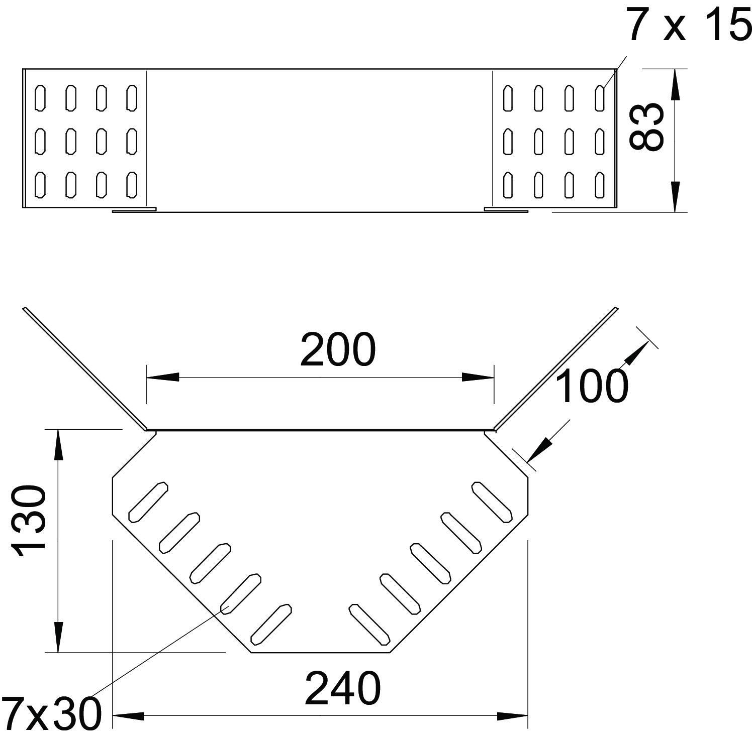 Opis proizvodaUgaona spojnica za nosače kablova bočne visine 85 mm.