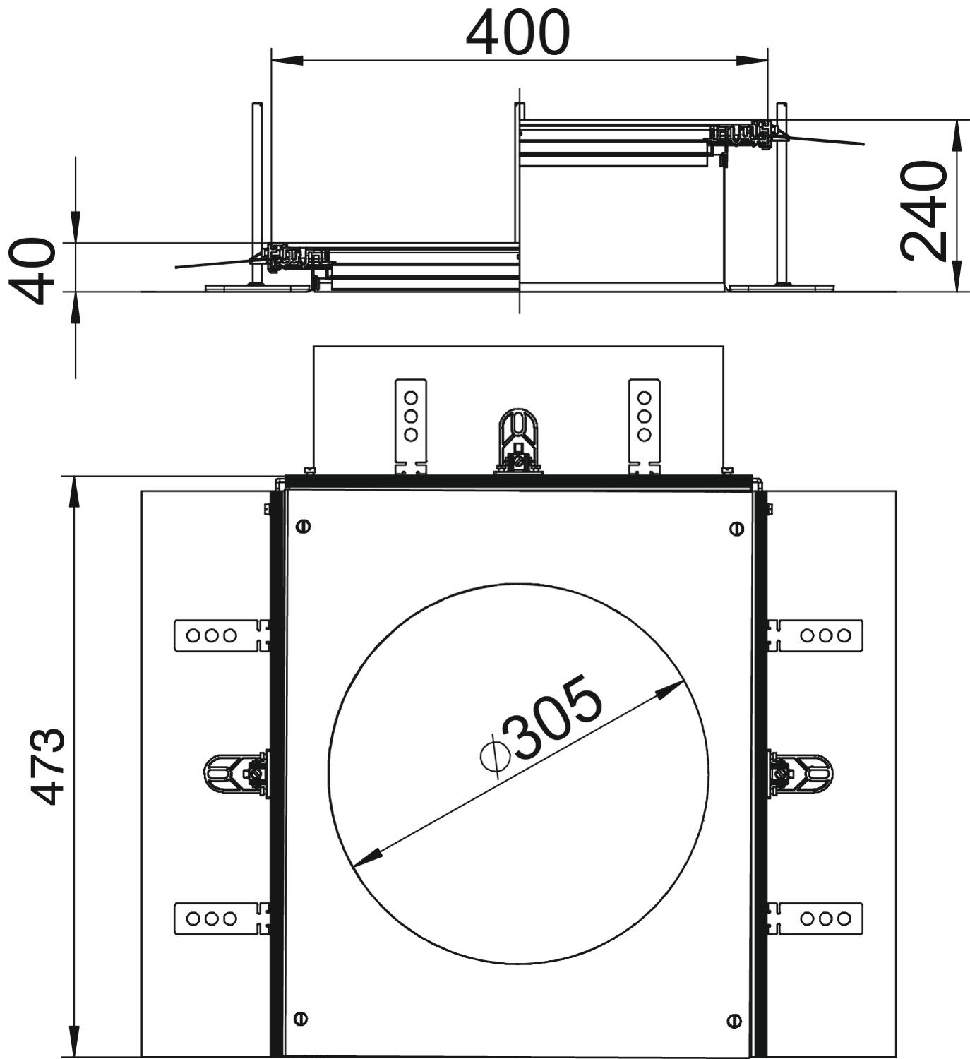 Veliki montažni otvor pogodan za ugradnju okrugle ugradne jedinice nominalne veličine R9 ili R9/55.