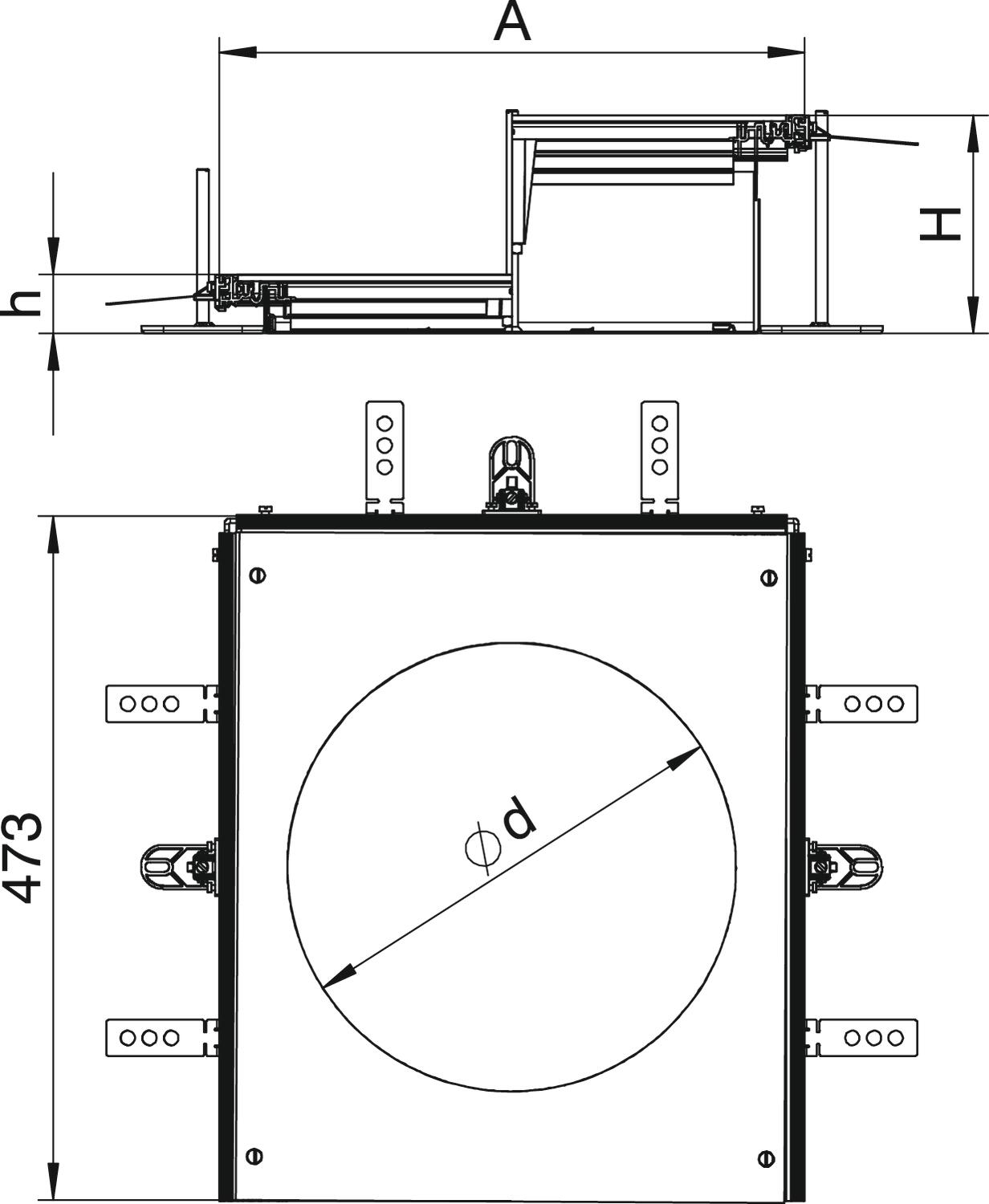 Veliki montažni otvor pogodan za ugradnju okrugle ugradne jedinice nominalne veličine R9 ili R9/55.