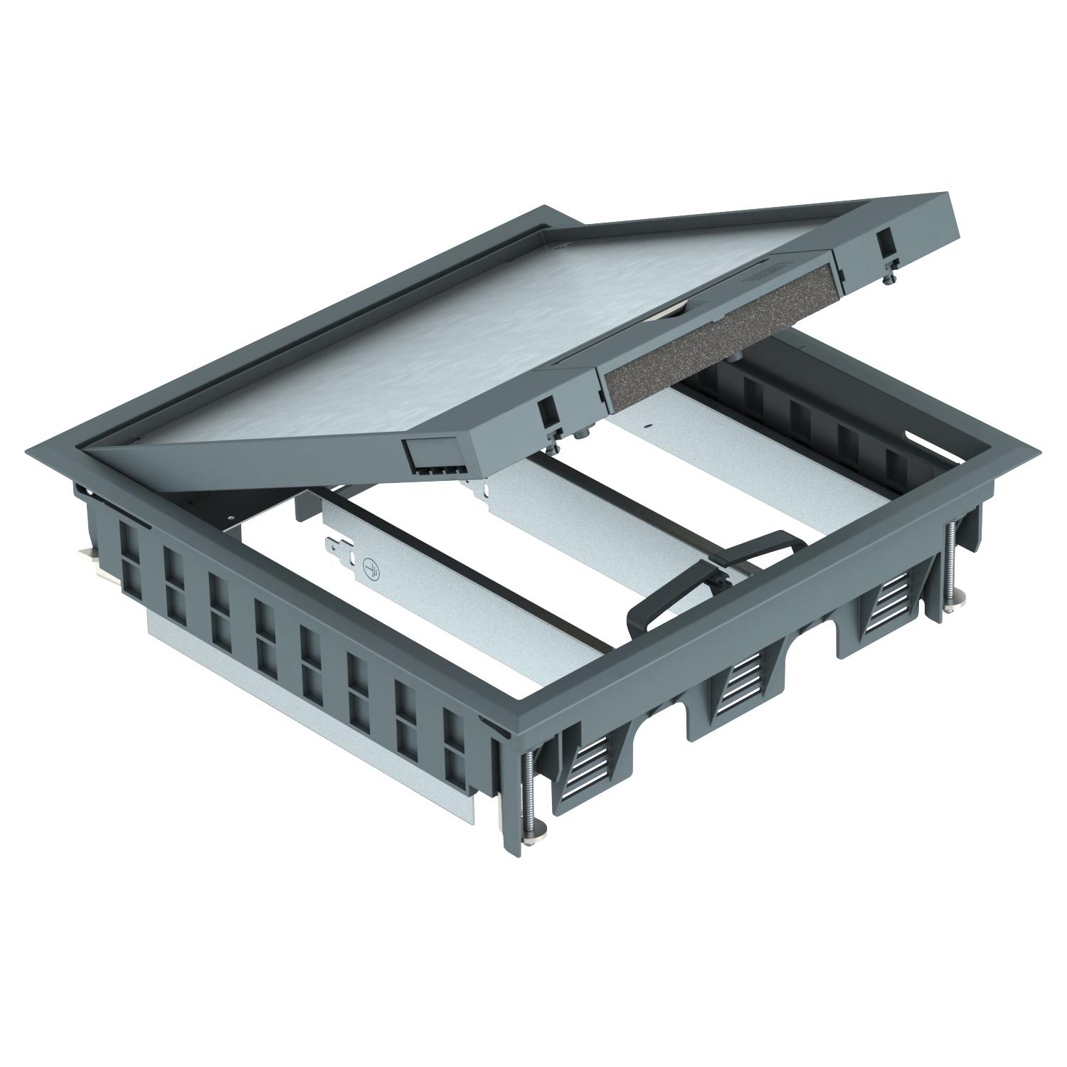 Opis proizvodaPriključak za uređaje sa ugradnim ramom od metala za montažu 3 pokloca modela APMT5, za primenu u podnim uzidnim kutijama UGD i UDS.