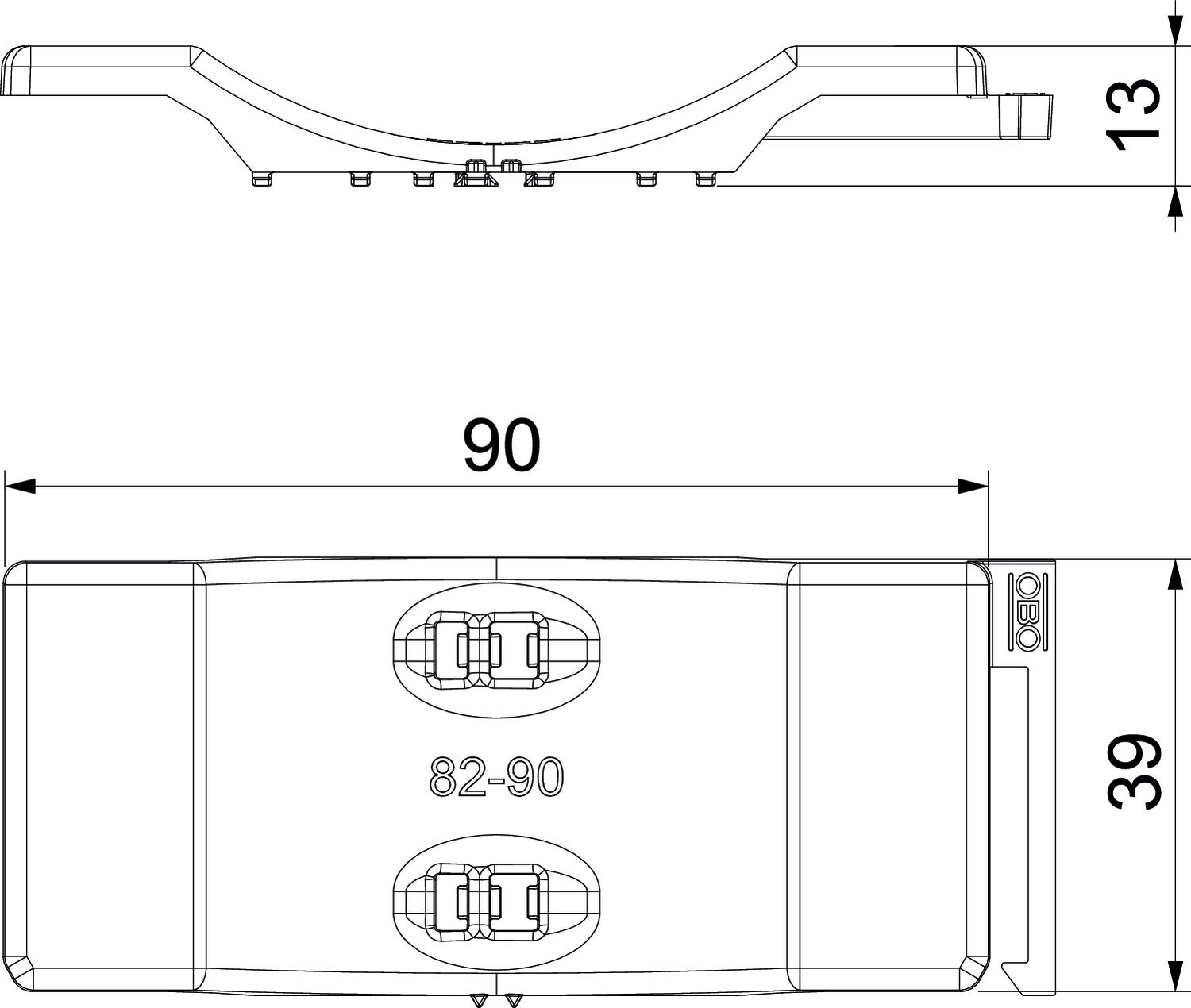 Opis proizvodaNezavisno od šine, univerzalna primena zahvaljujući navlačenju na jedan krak lučne obujmice. Inteligentna kontura na zadnjoj strani omogućava kombinovanje sa duplim koritom. Naknadne instalacije moguće bez demontaže lučne obujmice.