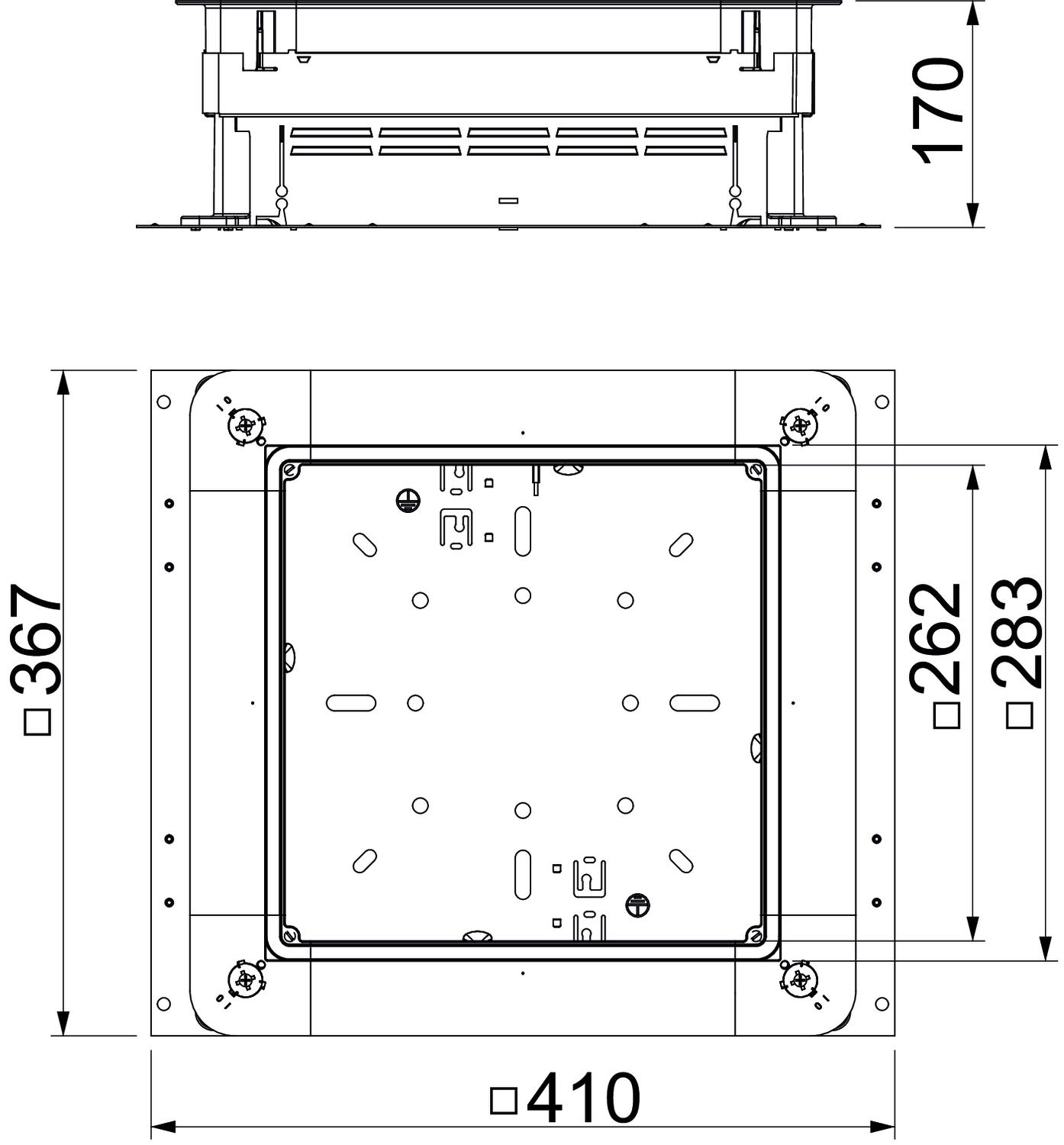 Opis proizvodaPodna vezna i razvodna kutija za podne instalacione kanale ispod betonske košuljice sa bočnim stranicama od čeličnog lima. Za montažu ugradnih jedinica u montažni poklopac (naručuje se posebno). Može da se niveliše bestepeno na visinu betonske košuljice (moguća brza nivelacija), a betonska košuljica može da se obradi u ravni sa ivicom poda. Sa opcijom akustičkog odvajanja nakon ugradnje betonske košuljice, a uz pomoć sistemskog pribora, može da se koristit i za velika opterećenja.