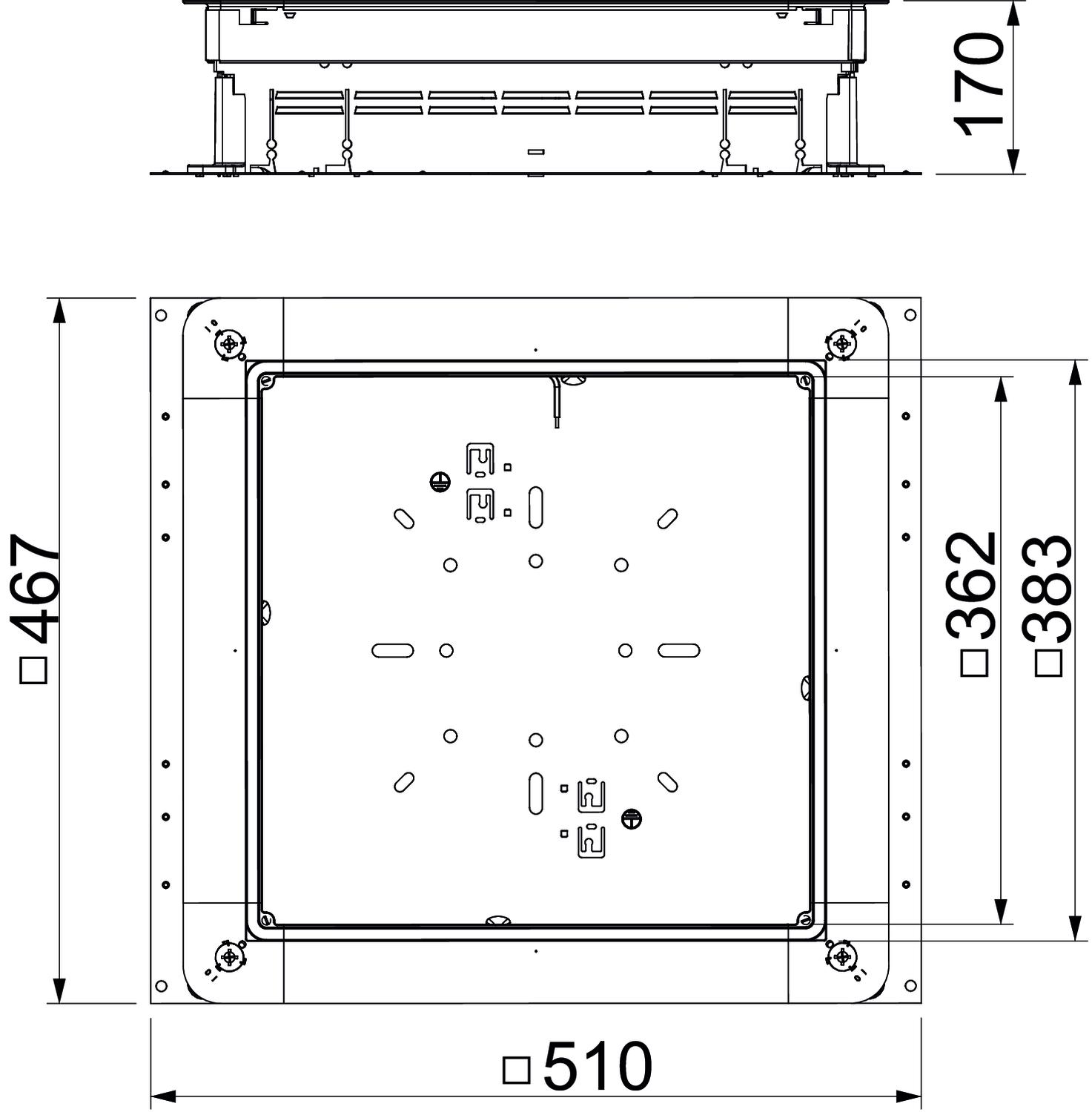 Opis proizvodaPodna vezna i razvodna kutija za podne instalacione kanale ispod betonske košuljice sa bočnim stranicama od čeličnog lima. Za montažu ugradnih jedinica u montažni poklopac (naručuje se posebno). Može da se niveliše bestepeno na visinu betonske košuljice (moguća brza nivelacija), a betonska košuljica može da se obradi u ravni sa ivicom poda. Sa opcijom akustičkog odvajanja nakon ugradnje betonske košuljice, a uz pomoć sistemskog pribora, može da se koristit i za velika opterećenja.