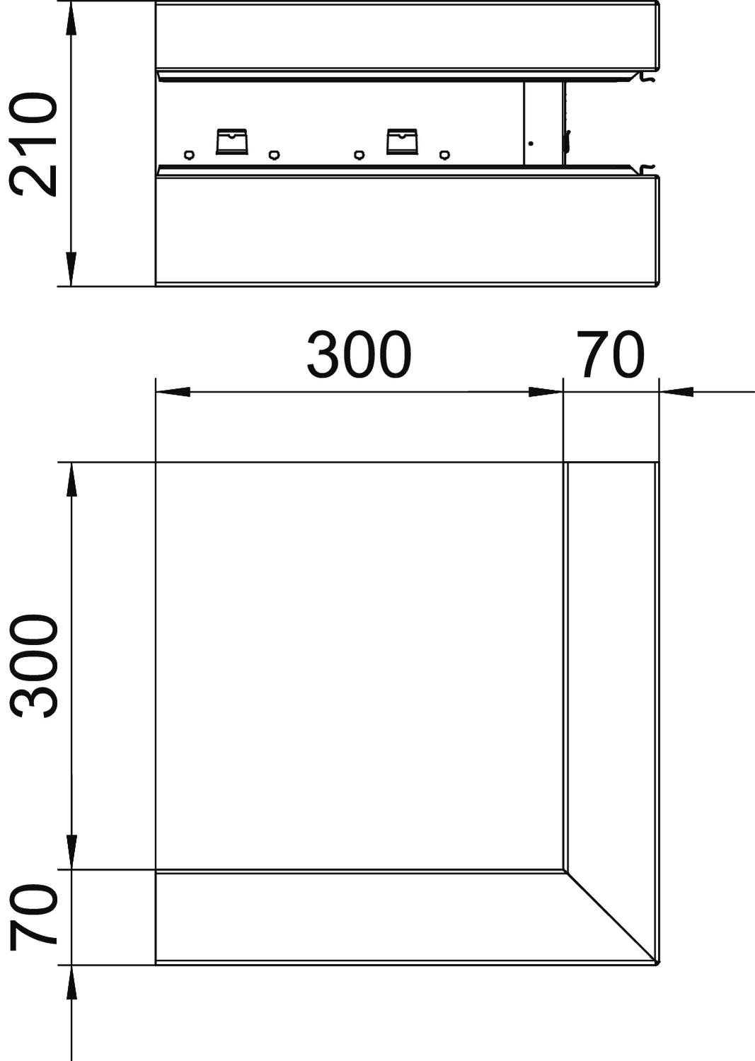 Antibakterijski tretman ne bez halogena da Boja čisto bela; RAL 9010 Broj poklopaca 1 CO2 otisak (GWP) od kolevke do kapije 10,5218 kg CO2e / 1 Komad Dimenzija 70x210x300 Dužina 300 mm Klema za kablove ne Materijal Čelik Montažna perforacija u podu da Način montaže poklopaca nalazi se unutra Oblast ugla min. 90 mm Simetrično ne Širina 210 mm Širina poklopca 76,5 mm Spojnica kanala ne Stepen zaštite IK-kod IK10 Temperaturna oblast primene maks. 60 °C Temperaturna oblast primene min. -25 °C Varijanta Kućište Visina 70 mm Vrsta zaštite IP30 za širinu kanala 210 mm za visinu kanala 70 mm Zaštitna folija da - Svi tipovi