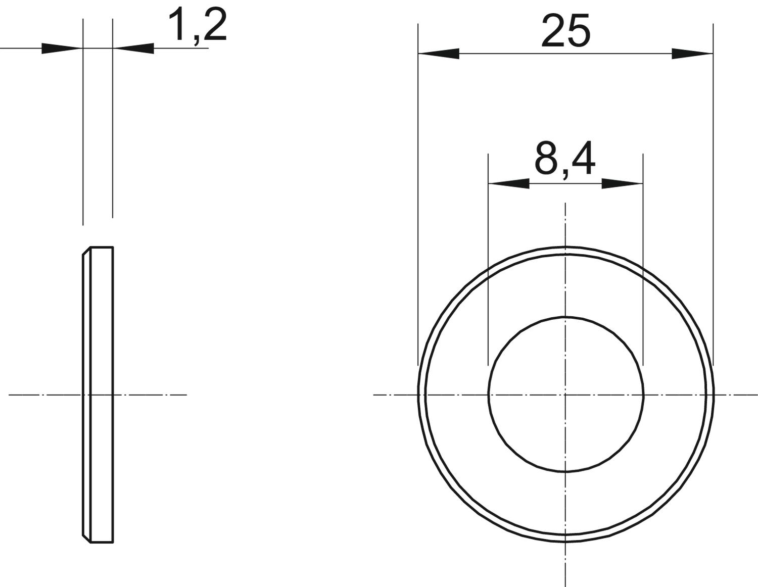 CO2 otisak (GWP) od kolevke do kapije 0,01 kg CO2e / 1 Komad Debljina lima 0,05 in Debljina materijala 1,2 mm Dimenzija M8,Ø25mm Dimenzija D 8,4 mm Dimenzija D maks. 25 mm Dimenzija D min. 25 mm Dimenzija h 1,2 mm Ivičast ne Materijal Čelik Navoj M8 Ojačano ne Površina galvanski pocinkovano Spoljašnji prečnik 25 mm Unutrašnji prečnik 8,4 mm - Svi tipovi