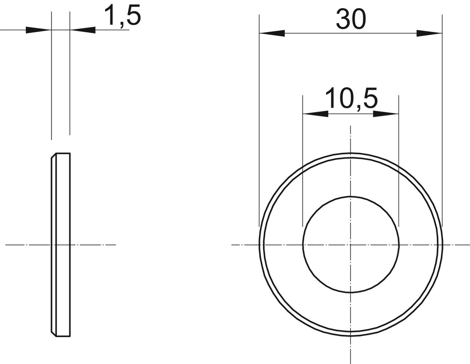 CO2 otisak (GWP) od kolevke do kapije 0,0179 kg CO2e / 1 Komad Debljina lima 0,06 in Debljina materijala 1,5 mm Dimenzija M10,Ø30mm Dimenzija D 10,5 mm Dimenzija D maks. 30 mm Dimenzija D min. 30 mm Dimenzija h 1,5 mm Ivičast ne Materijal Čelik Navoj M10 Ojačano ne Površina galvanski pocinkovano Spoljašnji prečnik 30 mm Unutrašnji prečnik 10,5 mm - Svi tipovi