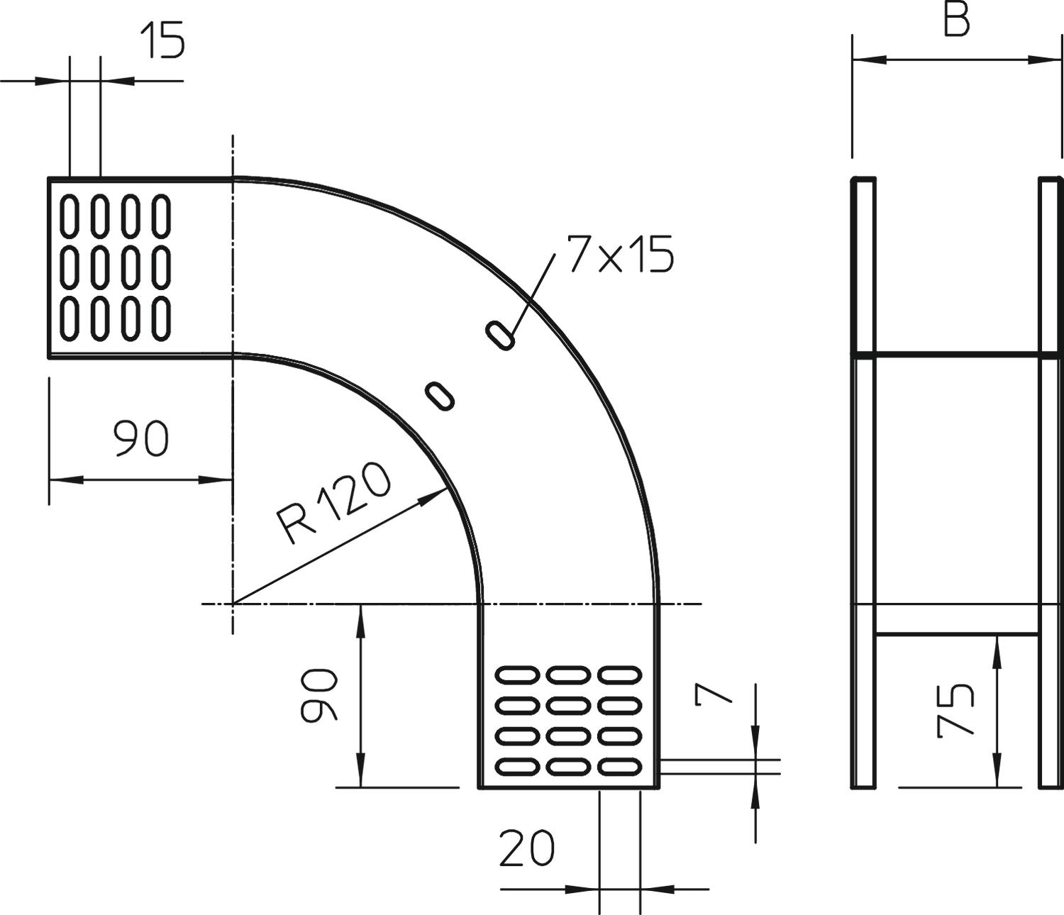 Opis proizvodaVertikalna krivina 90° u silaznoj varijanti za sve tipove nosača kablova bočne visine 85 mm.