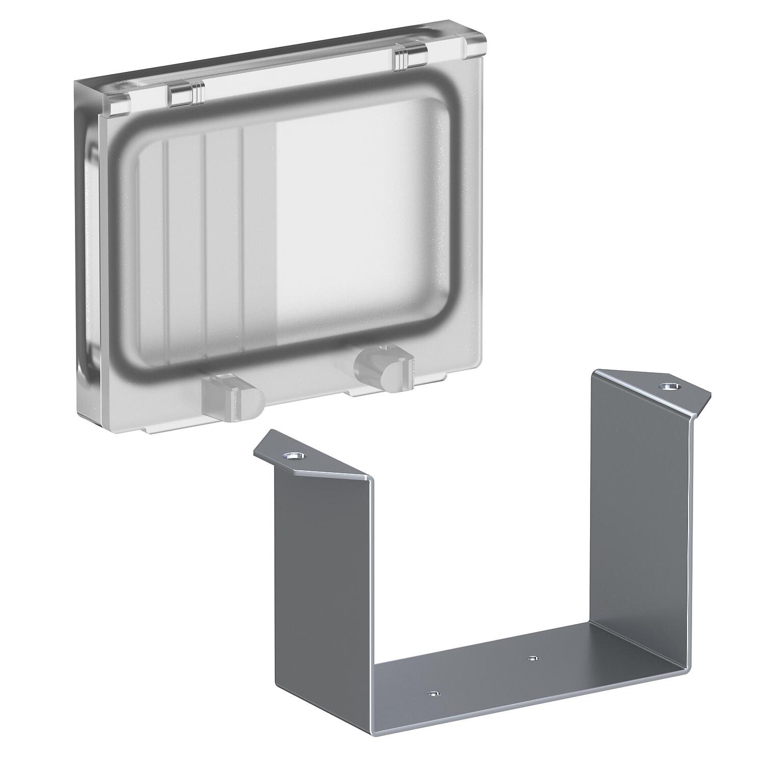 Opis proizvodaPoklopac i lučni nosač za ugradnju zaštitnih sistema, kao što su sigurnosni automati ili FI-osigurači do maks. 4 TE.