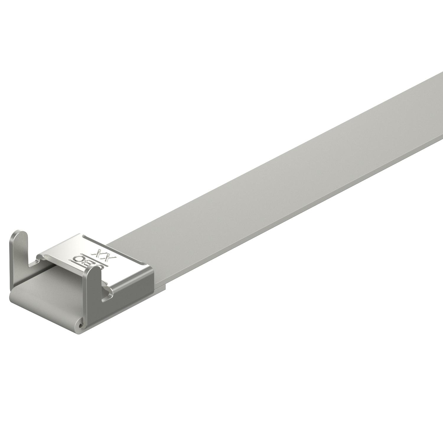 Opis proizvodaKonfekcionirana zatezna traka od nerđajućeg čelika sa plastičnim omotačem i zatvaračem zatezne trake.