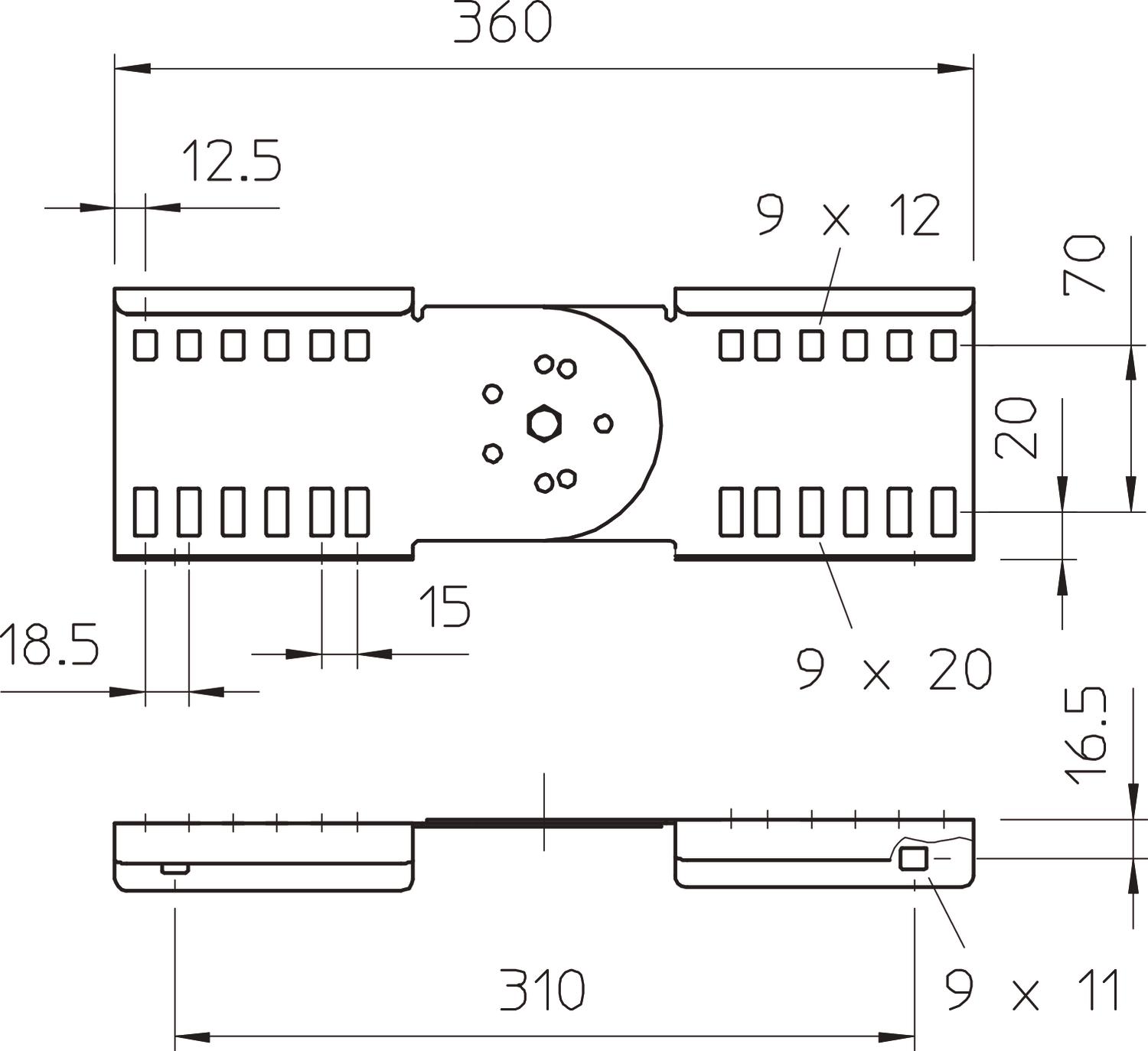Opis proizvodaZglobna spojnica kao spoljna spojnica za povezivanje lestvičastistih nosača kablova i fazonskih komada bočne visine 110 mm i stalnim perforacijama stranice. Ugao vertikalno podesiv.