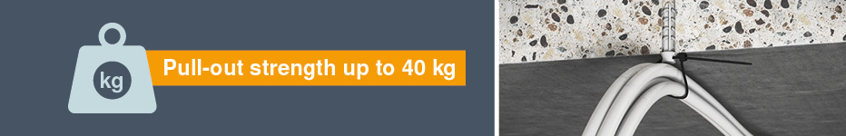 Delta-Push impresionira s visokom silom izvlačenja do 40 kg. Ova vrednost ne uključuje faktor sigurnosti. Ali šta zapravo predstavlja sila izvlačenja? Sila izvlačenja označava maksimalnu silu pri kojoj komponenta pod aksijalnim opterećenjem otkaže usled loma ili je izvučena iz izbušene rupe usled dejstva sile.