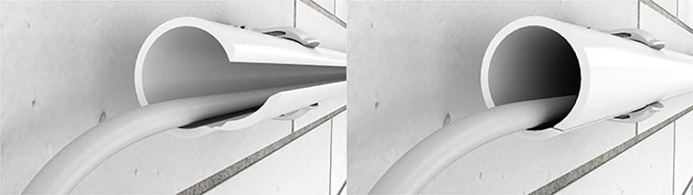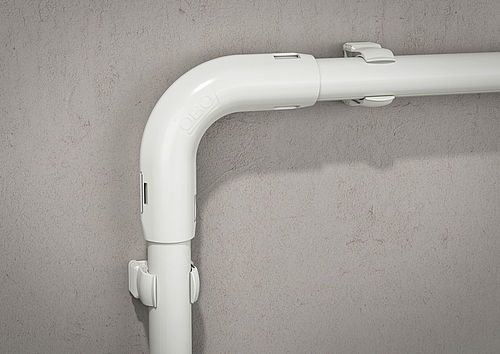 Svojim specijalnim oblikom Quick-Pipe-krivina od 90° je idealna za unutrašnje i spoljašnje ugaone instalacije. Garantuje pravougaono polaganje cevi. Optimizovana šarka i ovde se brine za posebno jednostavnu instalaciju.