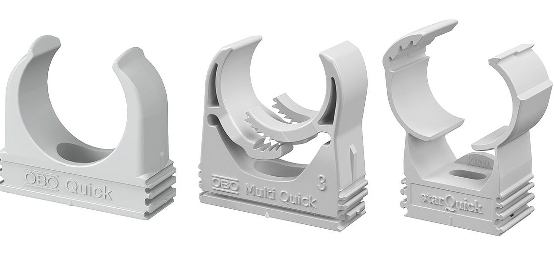 Quick-obujmice su idelane za pričvršćivanje Quick-Pipe sistema. Uz pomoć redne konture Quick-obujmice se mogu međusobno spajati bez problema. Time korisnik štedi nekoliko koraka instalacije, jer se sa samo jednim otvorom mogu montirati do tri obujmice.